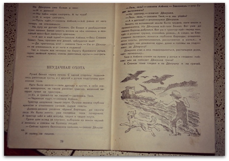 Книжица старенькая, 88-го года, без обложки даже. Картинок мало и они черно-белые. Буквы крохотные, в книге слов непонятных специфических немерено. А дети просят. )))) Нравится им про деревенскую девочку Таню и ее подружку Алёнку слушать.