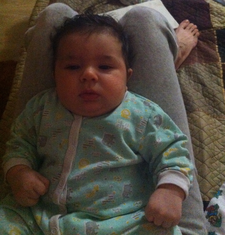 Вовочка выглядит несколько солиднее, не правда ли?))) Еще бы! Он за месяц набрал 2 килограмма! Его вес 4 марта был 6700 г! Вырос на 2 см. Педиатресса сначала сказала, что он переедает. Но осмотрели его, пришли к выводу, что толстым он не выглядит, просто крупный и плотный такой...