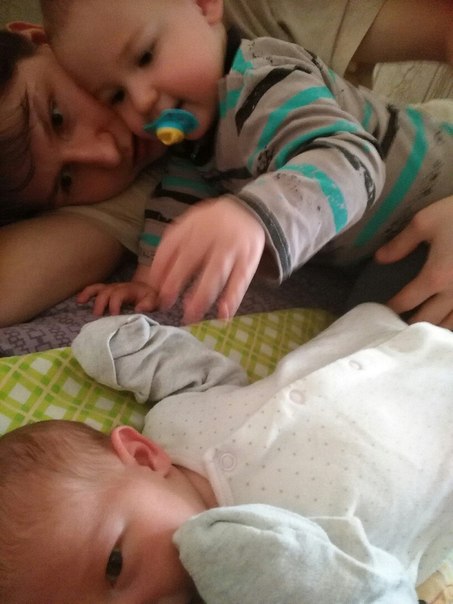 И вот, мы уже второй день дома. Новоиспечённый братик нас встретил нормально. Сестрёнку не обижает, проявляет интерес, гладит её по ножкам, по головке, даёт ей соску и свою бутылку, но он по сравнению с ней такой огромный, ещё бы - 12850 против 4150(сегодня взвесились), и аккуратностью не отличается, так что мы с мужем следим за их общением с замиранием сердца. Разрешаем трогать маленькую, не отдёргиваем, мягко останавливаем слишком резкие движения, объясняем, что надо аккуратно.