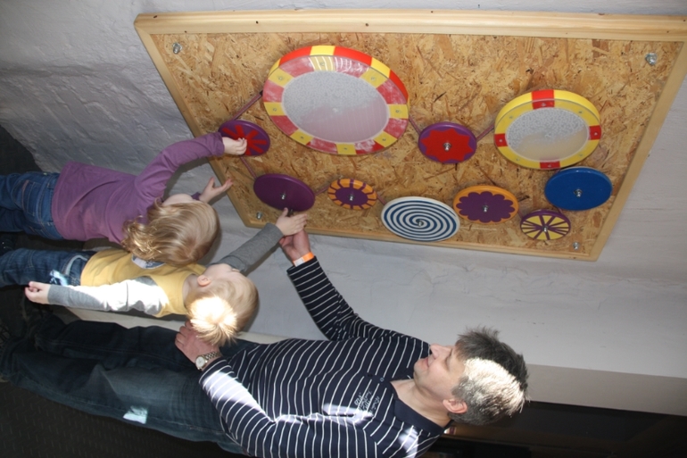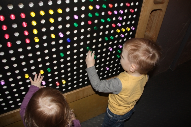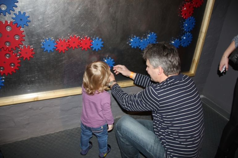 шестеренки на магнитной доске, можно собрать из них цепь и раскручивая одну, начинают крутиться все остальные... дети минут 20 возле нее простояли)))