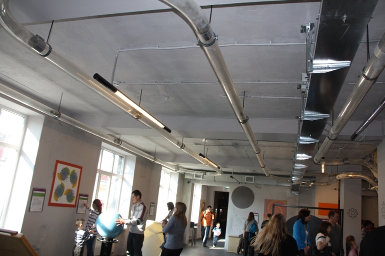 крикнув, можно услышать свой голос в трубах (установлены на потолке)