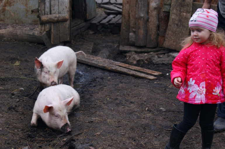 Наверно нам повезло в том,что наши дети имеют возможность знакомится с домашними животными не по картинкам, а в их среде. Наши бабушка и дедушка живут в селе и имеют большое хозяйство. И если Антон пока не понимает всех "прелестей" деревенской жизни,то Софа во всю использует возможности нашего "личного контактного зоопарка".