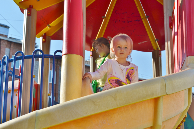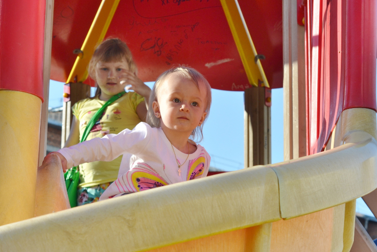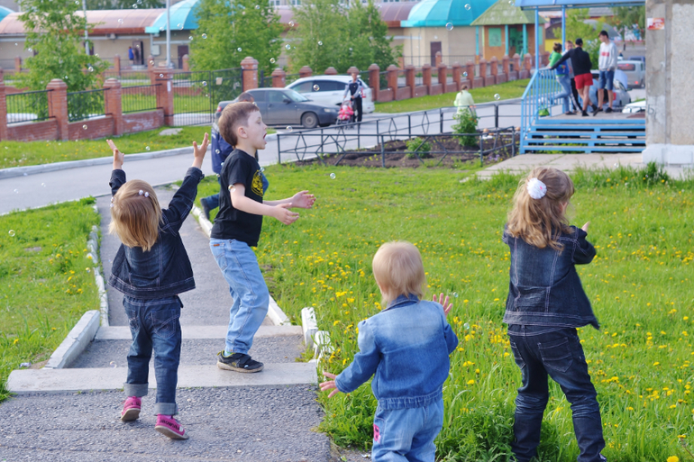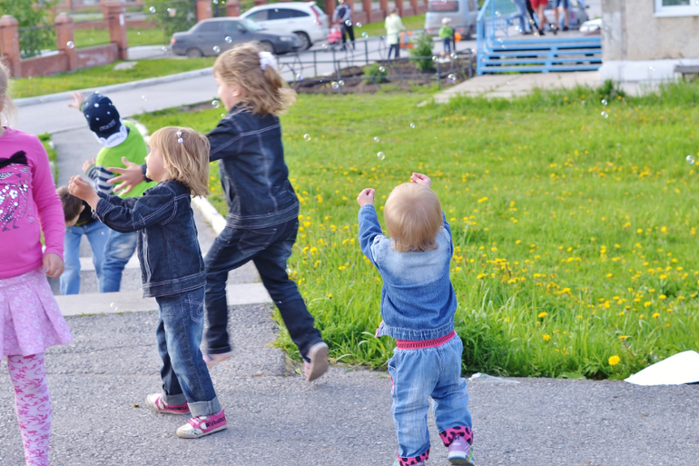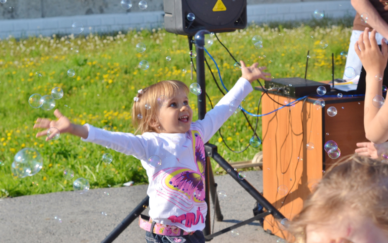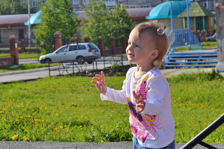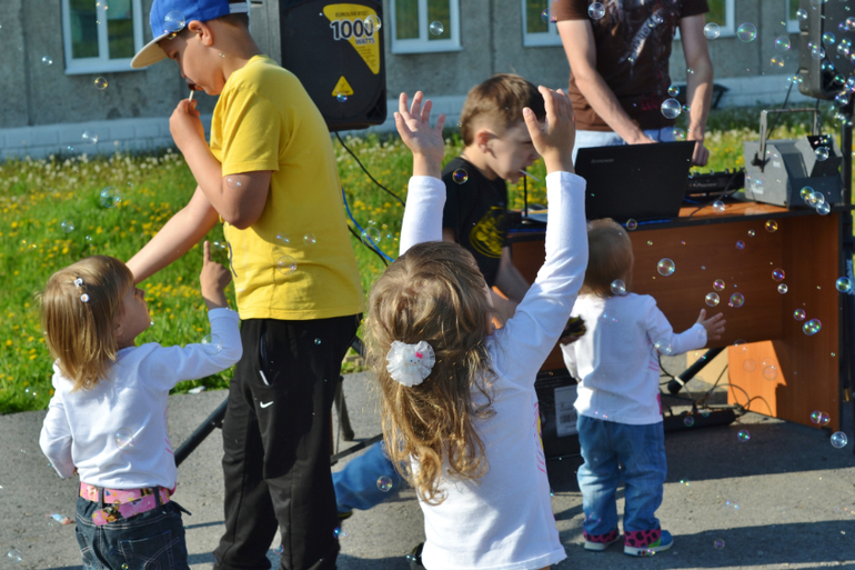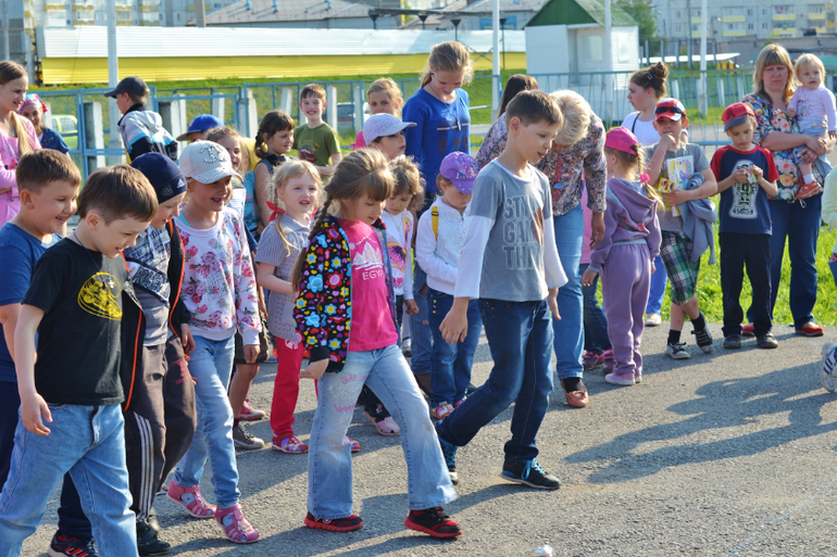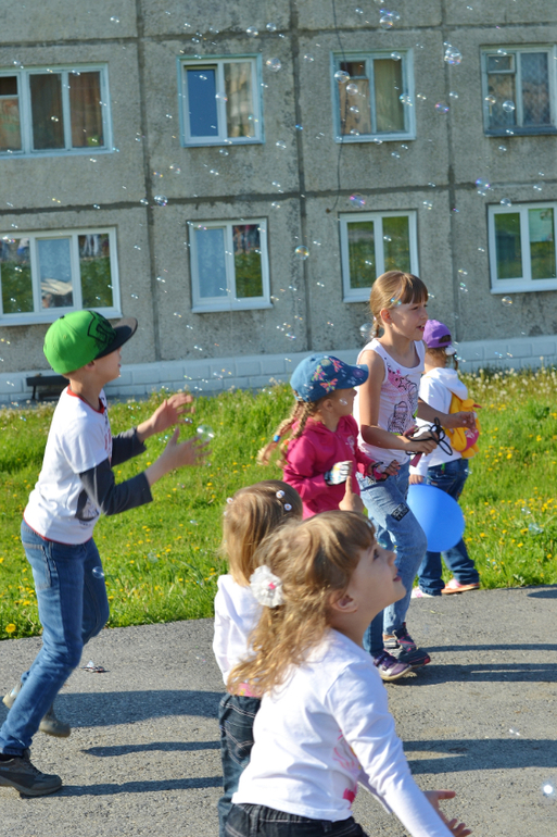 Старшие отказывались, говорили: "Это же не очень полезно" и возвращали (я при этом думала: "Молодцы! Блин, а может себе взять тогда? Ах, неет, я же на диете, мне теперь тоже нельзя"). На шариках мечты написали и пустили их в небо. С пузырями играли. Хорошо, что я одела их в одинаковое (сейчас летом так и делаю всегда), т.к. их тогда в огромной толпе детей проще найти. Особенно наш шилопоп постоянно убегает куда глаза глядят, это просто кошмар! Как бы в Сочи её не потерять! Уже через 1,5 недели уезжаем. После праздника все пошли на ближайшую площадку, ну и там чуток пофотала.