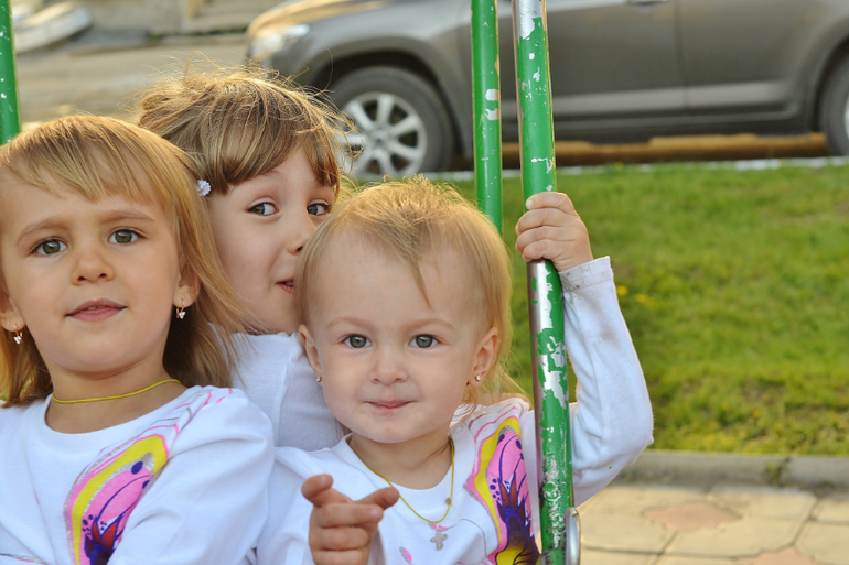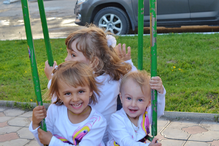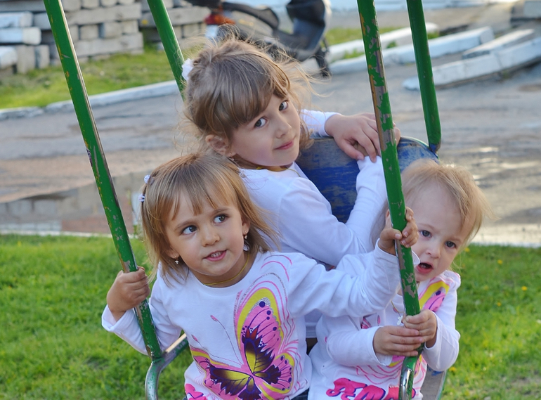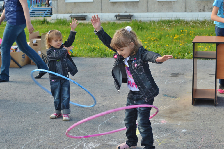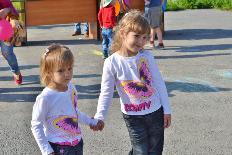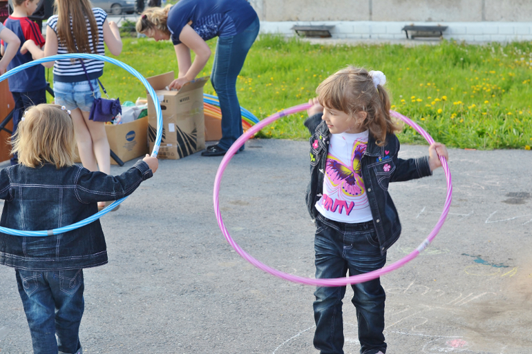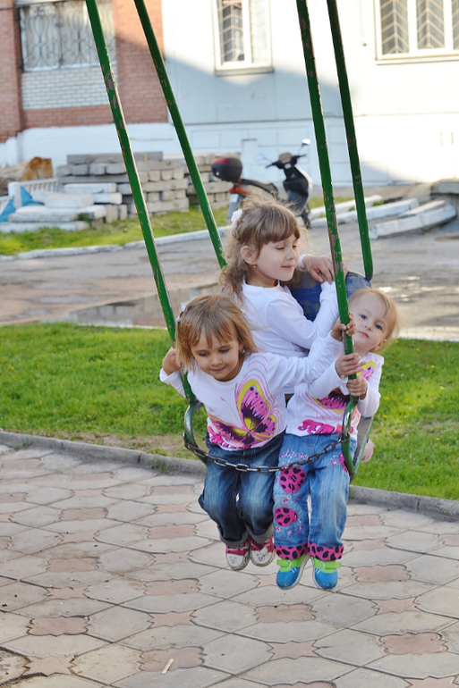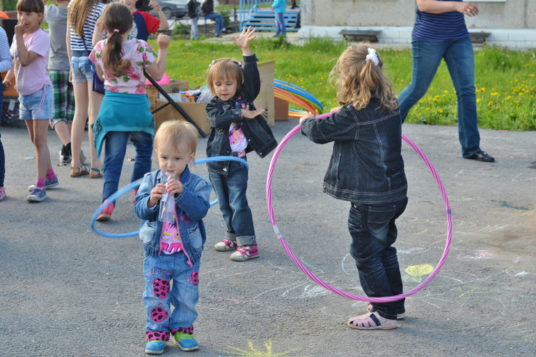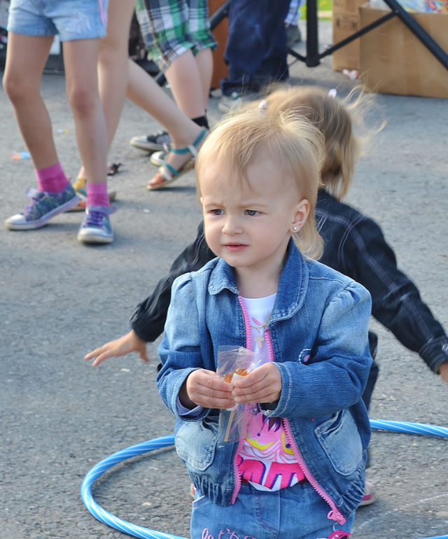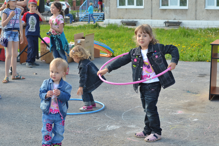 Трое и более погодковСегодня был праздник (перенесённый с 1 июня) для детишек у нас возле дома. Тоже сходили. Там были разные конкурсы, в каких-то мои поучаствовали, до других не доросли ещё. Поэтому развлекали себя сами в это время. Всем детям раздавали постоянно шоколадки, конфетки, петушков на палочке - даже Алесте!