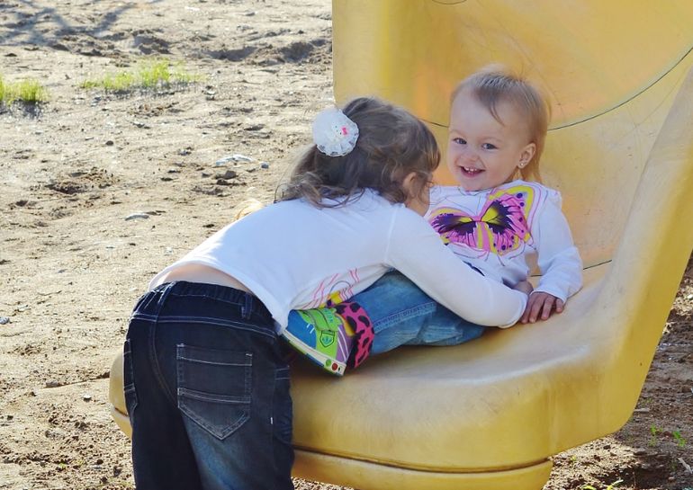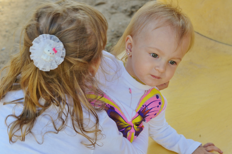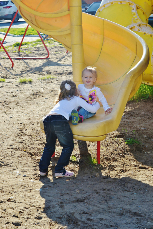 Берёт её на ручки (так она её ещё зимой брала в комбинезоне, когда гуляли), ставит на землю, и Леста бежит снова на горку. А вот в песочнице если раньше спокойно сидела и играла, то теперь за ней глаз да глаз - рапробовала песоооок. Секунда - (посмотреть, где старшие) - и всё! Полон рот песка, аж щёки надутые. И скорее тикает куда-нибудь подальше от меня спрятаться, чтобы я не вынула песок у неё изо рта, козявка! Это пипец, девки! Никто у меня так песок не жрал! Хорошо хоть, что пляж в Сочи галечный