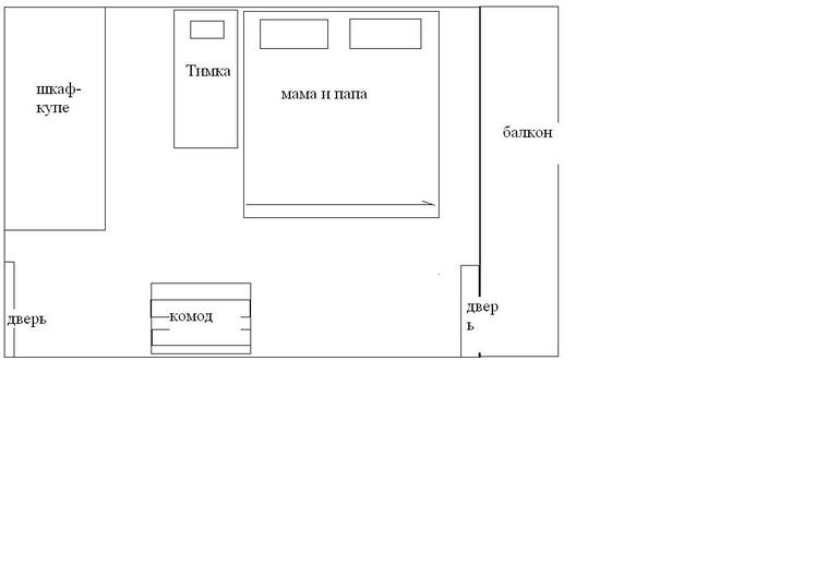 Если всем спать в этой комнате, то вместо комода поставить люльку или новую кроватку. Либо поставить кроватки по разные стороны от нашей кровати. Тимка будет спать со стороны папы, а его братик со стороны мамы :) (пишу и мен все больше нравится этот вариант)))))