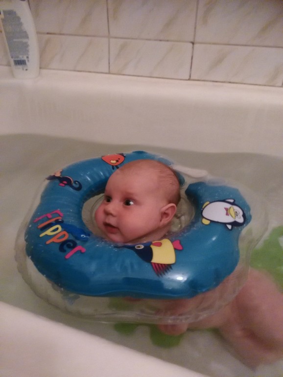 С Родионом купаемся или муж или я, всё зависит от поведения Дуняши и её видов на меня(на сиську, на самом деле))). Дуняша купается в круге.