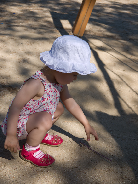 Валерия стала какой-то неваляшкой у нас - прогулка без падения редкость, ноги все в синяках (такое ощущение, что из садика каждый день новые приносит), живого места нет. А на днях умудрилась упасть в садике и оцарапать нос в трех (!!!) местах. На площадках везде лазает сама, на горки, городки и пр, не боится ничего. Ну вот как скажите такую разбойницу в платья наряжать?