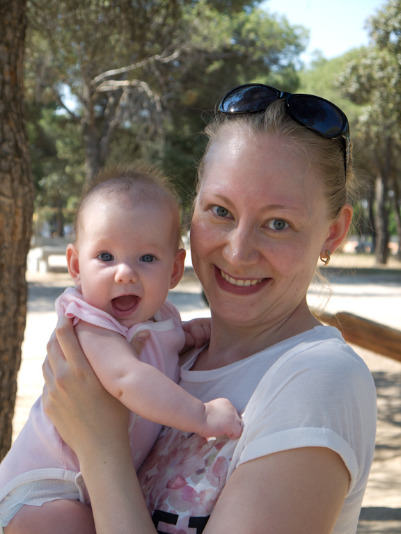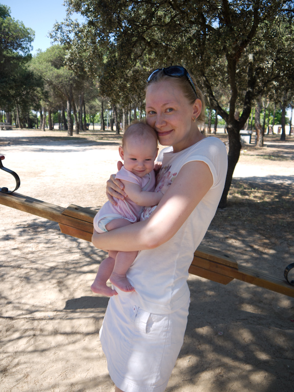 Говорит по-прежнему только отдельные слова (как на русском, так и на испанском), но лексикон активно пополняется. Из последних приобретений: пить, всё, иссе (еще), таки (тапки), кийка (книжка), пайм (пальма), пупа (боба по испански), кохе (возьми, держи по испански), аки (здесь по испански). Забавно, но почему то Лера всегда говорит «да» по русски, а «нет» по испански (но), привет всегда по испански (ола), а пока только по русски)))))). Я пока не особо жду, что заговорит предложениями, понимаю, что ей тяжеловато как билингве, но надеюсь около 2х (плюс-минус) нас прорвет)))