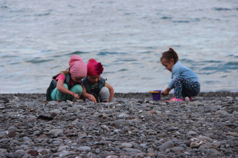 К началу второй недели стало теплее,мы сменили нашу одежду и верблюжье одеяло ночью,на шортики с маечками и легкие пледики.На море не купались,а лишь ловили волны,то забегая,то выбегая из него.Брали детский бассейн,наливали туда воды,через 10 минут она становилась теплая и мои лягушата плескались,смеялись и насыпали туда кучу песка,пока вода не превращалась в грязную лужу)