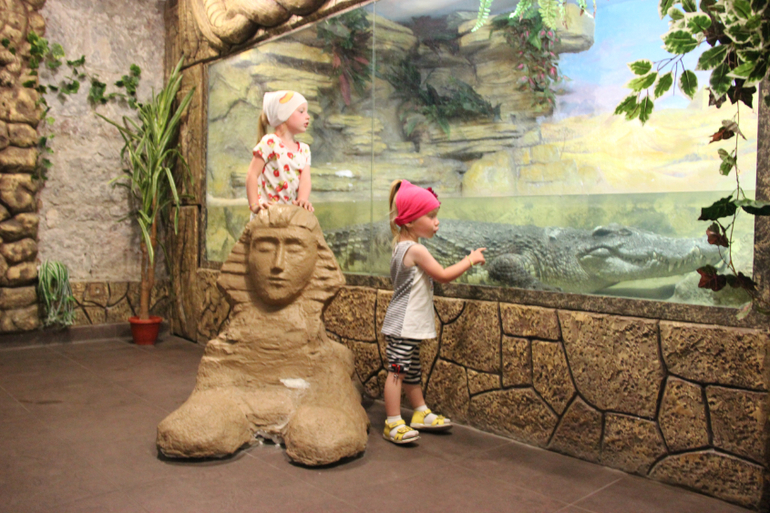 На этом наши путешествия не закончились,и,погуглив,мы выбрали места для посещения близ Ялты и непосредственно там.С детства мечтала попасть в "Ласточкино гнездо",туда мы первым делом и отправились!На картинках оно казалось больше,в реале - великолепное творение,небольшой замок с выставочными залами,смотровыми площадками,всякими магазинчиками с сувенирами.От дороги люди шли около 800м пешком по ступенькам,мы,проехав в санаторий "Жемчужина",отдали 200 руб. за парковку и сразу попали в "Ласточкино гнездо",проехав всего метров 100 на коляске вверх от парковки через забор. Для нас это было принципиально,потому что слинг я не взяла,да и детей километр по ступенькам вести не очень хотелось. Зайдя в здание напротив самого замка или крепости,не могу точно сказать;), мы взяли экскурсию и послушали историю жизни сея прекрасного строения.Вид там конечно нереально шикарный,завораживающий,какое-то чувство,что ты в 18 веке)))Насладившись сполна этой красотой и немного перекусив,нас понесло дальше.А дальше нас ждало незабываемое место в Ялте "Крокодиляриум".Я всем рекомендую посетить эту ферму, я пересматриваю фото и до сих пор дух захватывает от этих огромных,страшных,хитрых,зубастых,хищных крокодилов!!!А кожа у них какая!!!Я сразу сумочку представила))) Там были такие удивительные черепахи! Посмотрели,как кормят крокодилов,за три кусочка нужно заплатить 100 руб.;),я думала,что они сейчас выпрыгнут из своих аквариумов,было жутко.Ощущение,будто они не настоящие,но это не так,крокодилы делают вид спящих и ждут добычу.Один прям пастью по стеклу водил и смотрел на нас,что мы сделали?УБЕЖАЛИ КОНЕЧНО)!