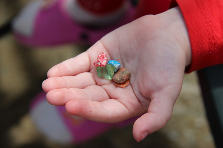Катюшка болтает без умолку,а Софиночка моя помощница,очень грамотная,но и плаксивость ее никуда не делась;)Мне вообще показалось,что дети подросли за этот месяц физически и умственно. А это Софинка разрисовывала камни икеевскими карандашами, называла их кристаллами)
