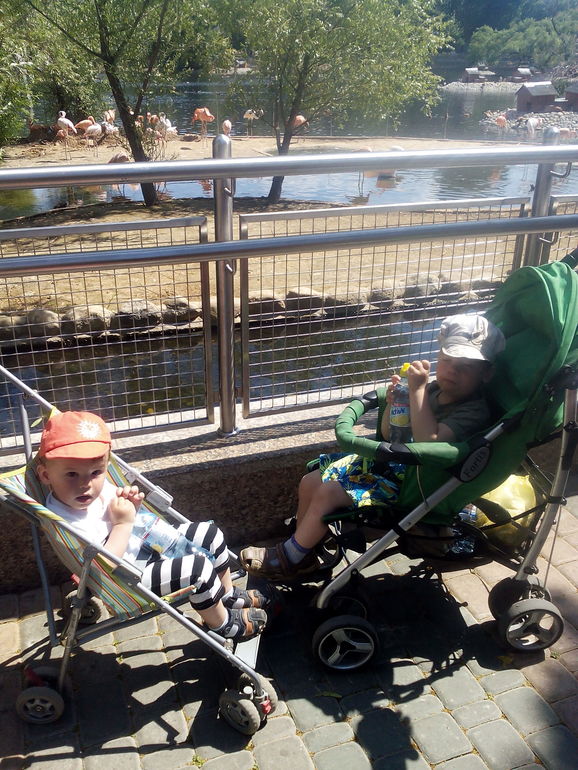 Отдых с погодкамиЕздили в воскресенье, решили что пора детям в свет выезжать)))) итак поехали естественно на машине, взяли с собой 2 трости, Даник правда могбы и пешком походить. Все конечно не посмотрели, половина зоопарка на реконструкции, было очень жарко половина животных попряталась половина лежали полудохлые. Переживали как Даник отнесется к поездке так как побаивается животных. В целом прошло нормально, дети сказали ,то им понравилось. Следующая поездка запланирована в океанариум. Ну и фото