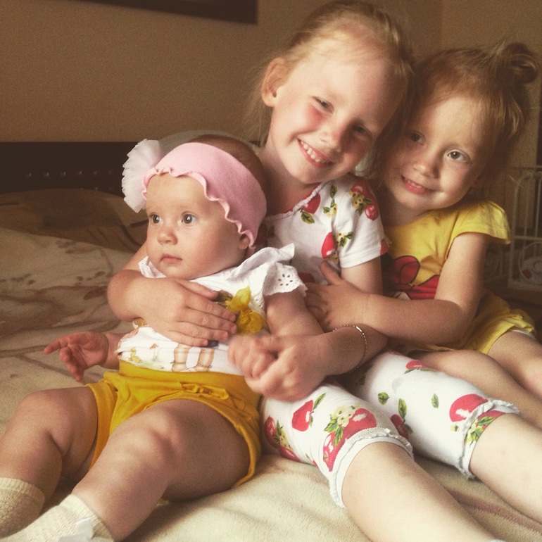 С Софиной у них какая-то особенная связь,как же Софи ее любит,так ласково общается,а Натуська улыбается,хохочет и гулит ей в ответ!Катюшка в роли защитницы,роли у них,как у мамы и папы)))