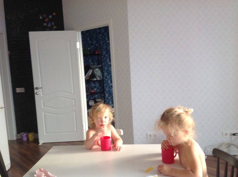 Девочки сразу же прибегают к нам, иногда поодиночке, чаще вместе. Муж в командировке, поэтому картина такая.