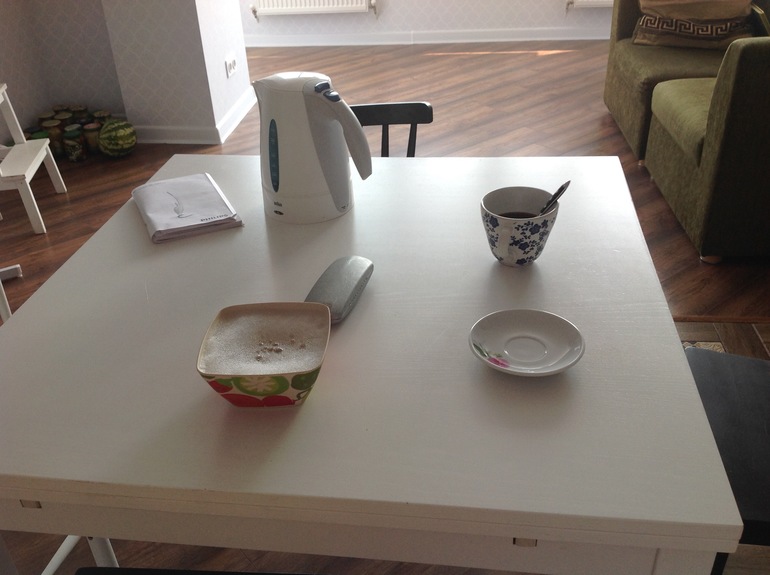 Время 8-35 , я дома. Мы пару недель как переехали в новую квартиру, мебели особо нет, часы эти вот тоже ждут, когда мы решим, куда их повесить. Я завтракаю и иду валяться:) На прошлой неделе, когда дети только пошли в сад, я не могла оторвать себя от дивана. Просто лежала, читали или вообще просто валялась и не могла себя заставить хоть что-нибудь сделать. Сейчас уже лучше:)