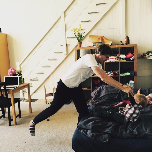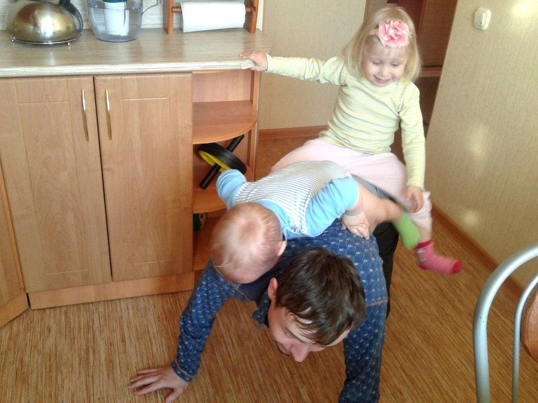 и наш папа так же)))) только у нас еще в семье и мама-дура которая сверху вместе с детьми залезет