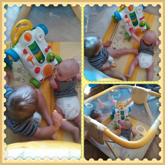 Родион тоже вроде бы стал спокойнее. Он почти перестал швыряться вещами, это просто чудо!) (ну да, пробил сестре голову и перестал). Вообще, он конечно растёт и начинает больше понимать и учится терпеть, придумывает более сложные игры, лазает на площадках все ловче и ловче(я страхую его с замиранием сердца). Помогает мне по дому)))) разбирает сумки из магазина(ставит все на стол), выкидывает подгузники и бумажки всякие и прочее, когда прошу его выбросить в мусор, под настроение может собрать игрушки.