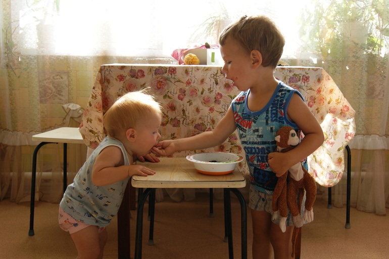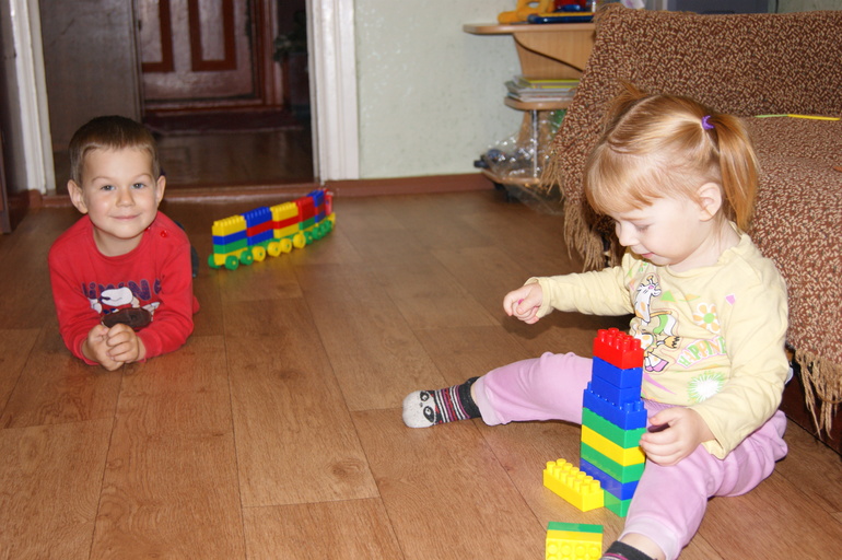Сейчас, прожив два года погодковой жизни, стало легко: мама днём работает в городе, едет 1,5 часа на автобусе домой, забирает дочь из сада, кормит сына ужином, делает дела по дому, при этом детки в большинстве случаев играют вместе (по правилам игр, которые устанавливает сын):