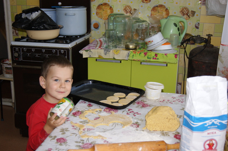 либо (всё реже и реже) сын смотрит мультики, а дочь рядом со мной. Потом все вместе играем. В выходные, конечно, детки, как магнитики, ходят за мамой, шумят, любят повизжать, игрушки тонким слоем рассыпаны по залу и другим комнатам. Меня раскиданные игрушки не напрягают, в отличие от дедушки и бабушки, всё равно вечером их собираем. При этом все дела сделаны (единственное, готовит у нас бабушка, только когда фантазии у неё не хватает, тогда мы). Даже в дневной сон дочери с сыном успеваем испечь печенье: