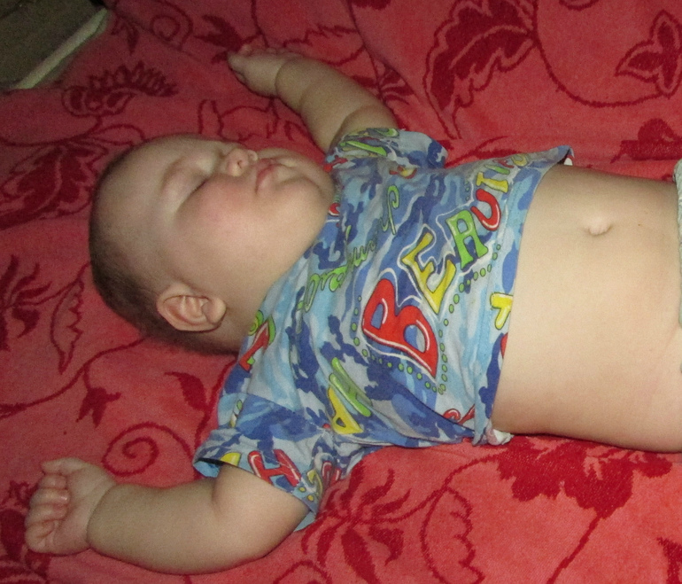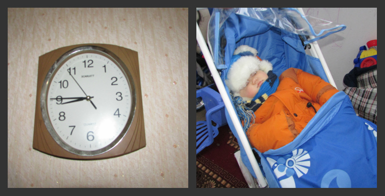 8-45 мы дома, Кирилл еще спит, поэтому отправляется на балкон досматривать сны.