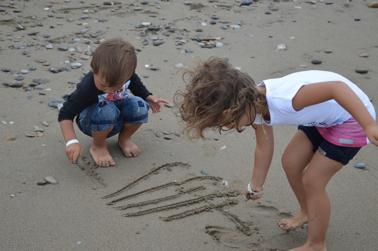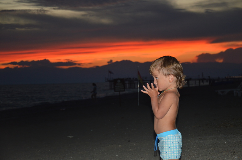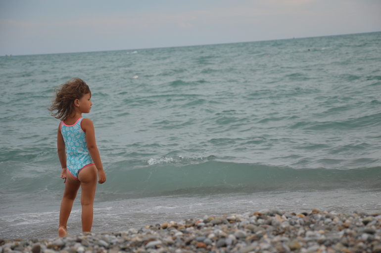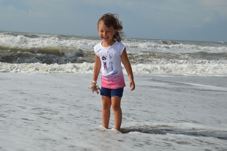 Дети за неделю привыкли к морю, поэтому спокойно уже купались там, в отличии от первого раза.Пару дней оно сильно штормило.