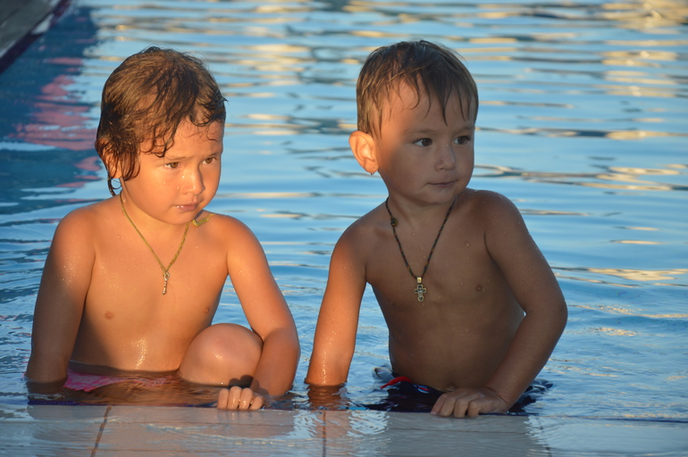 Но чаще всего мы тусовались в бассейне. Ника с января ходила на плавание, научились неплохо плавать под водой, поэтому на отдыхе практически стала звездой, прыгая с разбегу в воду и доводя спасателей до инфаркта) Захар подключился к ней с такими прыжками в последнюю неделю, уже провоцируя у меня сердечный приступ, поскольку на плавание мы пошли с ним только сейчас.