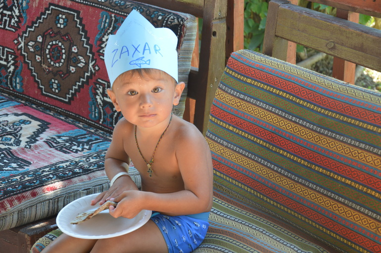 После прогулок мы, по своему обыкновению, оккупировали женщину, пекущую очень вкусные лепешки и требовали еды)