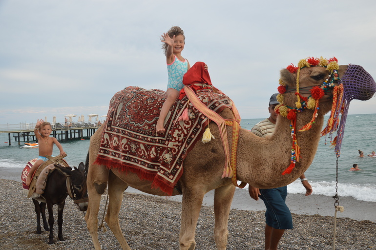 Так же каждый день мы караулили на пляже верблюда с ослом.