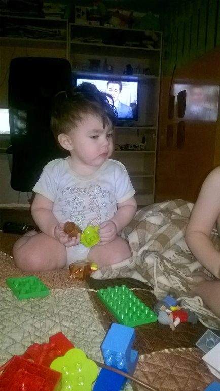 Ну а что касается конструктора Лего, то вот только разбуди - сразу начнет собирать: