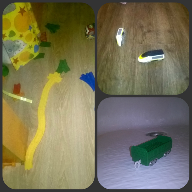 Пару недель назад друзья отдали нам всякий хлам оставшиеся в живых игрушки сына, был там и мешок с железной дорогой. Сначала я пособирала рельсы-рельсы, шпалы-шпалы - интересно! Только дети мешали - ломали все мои мосты и повороты. На следующий день играл папа, отправив меня добывать батарейки для поездов. Леня с паровозиками даже спит.