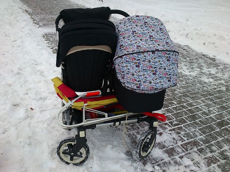 Этотполучается все равно коляска + снегокат :) Я могу так тогда докатитесь одного в одном, другого в другом :) Коляску для погодок мне не помогала совсем