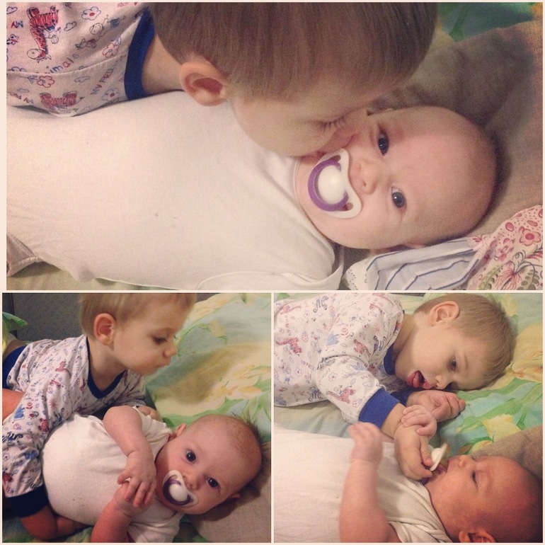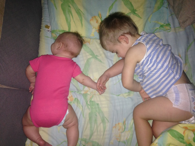 Наши детки (развитие, успехи, фото)Постепенно выхожу из комы. Дальше о нашей жизни под кат Саша стала уже большая. Уже не так страшно, когда Рома лезет ее обнимать. Смешливая девочка растёт. Очень любит наблюдать за братом. Как он играет, как ест. Хохочет в голос. Любит когда он её обнимает и целует. Рома сестру тоже любит. Ревность может и присутствует, но выражается не в агрессии, а просто в том, что Рома просит его покормить, на руках поносить. Временами просится на пеленпльник к Саше. Я не отказываю. Но чаще просто занимается своими делами. Первое время было конечно сложнее. Но сейчас, видимо привык. Раз или два в неделю устраиваю нам с Ромой прогулки вдвоём. Иногда ходим с ним в кафе. Благо бабушка (свекровь) переехала в Питер и может посидеть то с одним, то с другим. Пусть не целый день, а всего 3-4 часа, но я вижу как Рома разгружается эмоционально. Становится послушным. Ещё раз в неделю он с папой ездит к бабушке. Это наш с Сашей день. Ведь за ежедневной суетой с двумя я совсем не успеваю налюбоваться на неё, запомнить её такую. А она очень классная. Разговорчивая, очень редко плачет, бывает целый день проходит, а она и не плакала ни разу. Ну это конечно если мама была внимательна и вовремя накормила и спать положила😄 Спим мы все вместе. Муж работает по графику 3/3 с 9 до 21. Укладывать одного в кроватку, потом другую или наоборот... Это выматывало меня в обеденный сон. Два раза в день такой муки я бы не выдержала. Поэтому ложимся спать сразу вместе на нашу кровать. Рома с одной стороны, Саша с другой. Я посередине. Бывает так и остаюсь спать с ними днём) а бывает папа приходит с работы, в мы все храпим))) что могу сказать, жизнь налаживается. Думаю график мужа играет роль, конечно. Ведь он дома чаще в два раза, ну и что что я целый день одна, это оказалось совсем не так ужасно, когда ты отдохнувшая и полная сил.