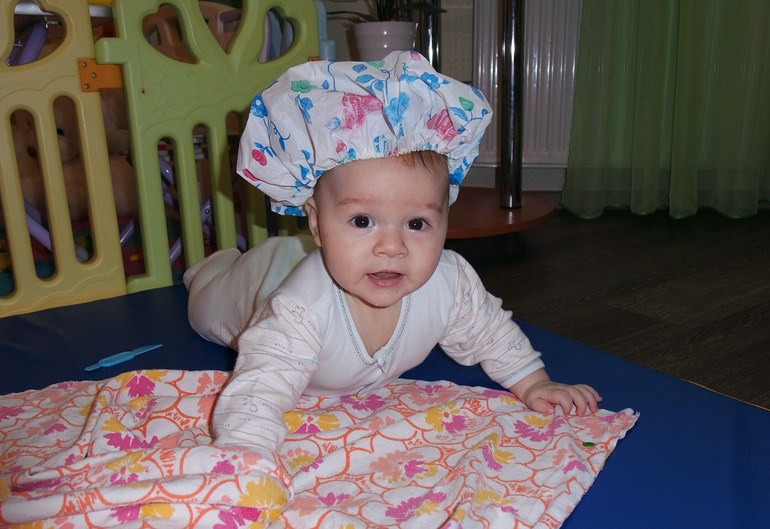 - встает на коленочки и раскачивается (дочка начала так делать только в 6,5 мес.)