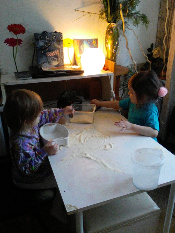 сейчас - +3 красных :), за хорошее занятие (без выкидонов НА ТАНЦАХ ей дано было 2 звездочки сразу, но такое было один раз.) все-таки, мед. обследование (МРТ и доплер делать будем), должно показать, что мешает ей.. чем помочь. Видно, что она не специально ..) .. вот такие занятия у нас появились дома еще.. Нейропсихолог нам рекомендовала использовать ее залипание для снятия напряжения и активного включения потом в другое занятие - ее любимую воду и песок. ( у нас это манка из пятерочки по акции))), помогает. Использую перед занятиями по тетрадочке. она лучше концентрируется потом.