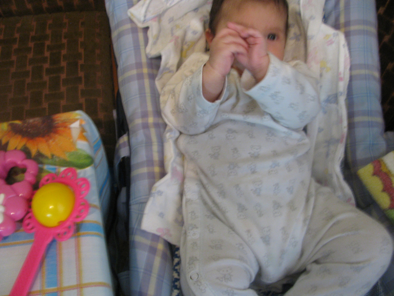 Младшая проснулась в 8.30. Покормила, попыталась укачать,чтобы поспать ещё, т.к.старшая встаёт примерно в 9.30, иногда и до 10 может поспать. Но не тут-то было(( Надюшка спит в это время исключительно у меня на руках, а я сижу на кресле дремаю. В начале 10 проснулась Машенька (поспать мне с утра опять не удалось).