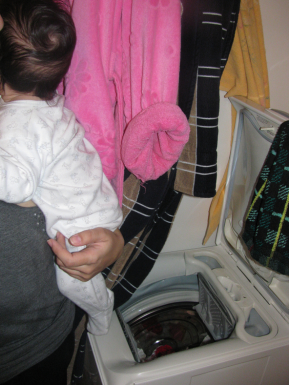 Сама загружаю стиральную машинку и глажу (если есть время, то глажу всё; если нет - только детское)
