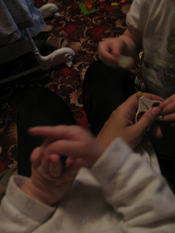 После кормления обрезаю ногти младшей (которые растут со скоростью света!)