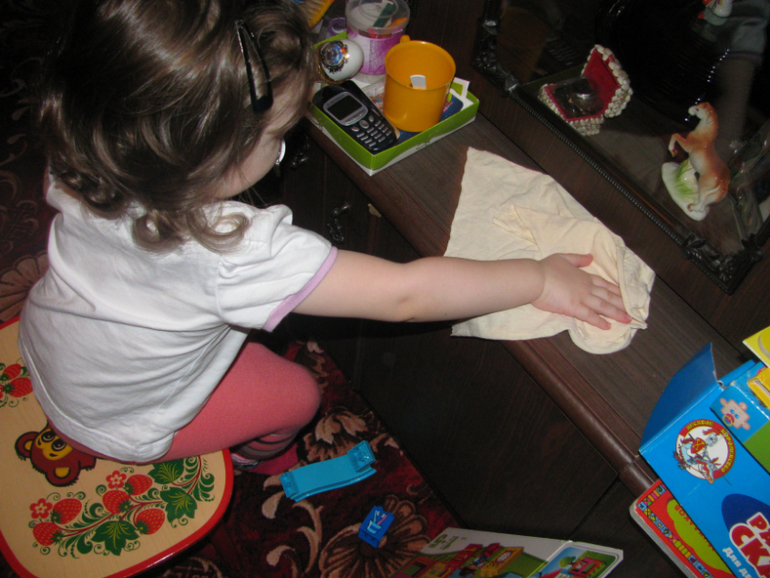 Потом идём вынимать бельё и вытираем дружно пыль)))