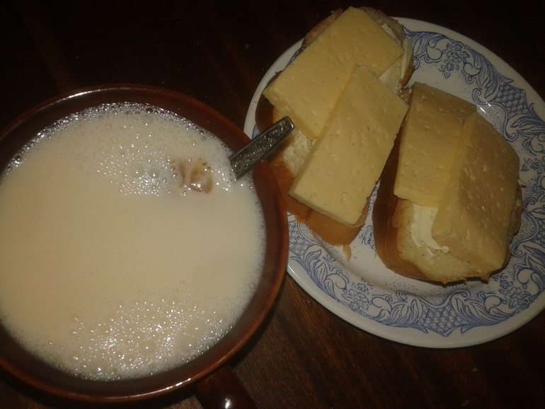 Ну и про себя не забыть, забыла сделать вчера себе овсянку в банке, поэтому по быстрому бутерыи чай с молоком, маленькая пол литровая чеашечка))))