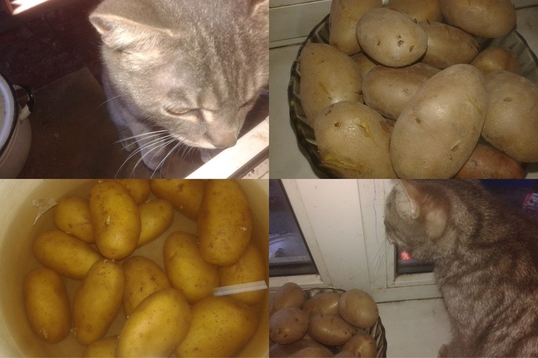 Вспомнила, что ребенок заказал блины с картошкой, поэтому снимаю овощи на шубу и ставлю картошку. Ну и стандартное у всех женщин, сними белье, развесь белье… И самое главное покорми котов, муррр. Риччард гуляет на улице, поэтому наши окна это мрак, котик лапками грязными становится на окошко, когда просится, а потом еще и на подоконнике отпечатки, отмываю раз в неделю, но толку нет…
