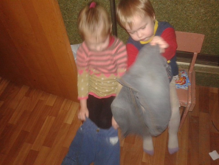 Аня и Андрей в это время устраивает догонялки/паровозики/бегатню.