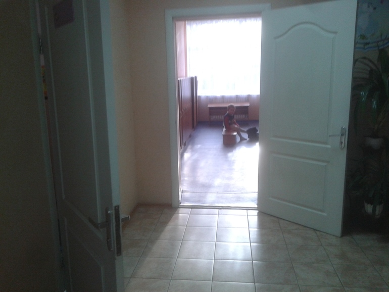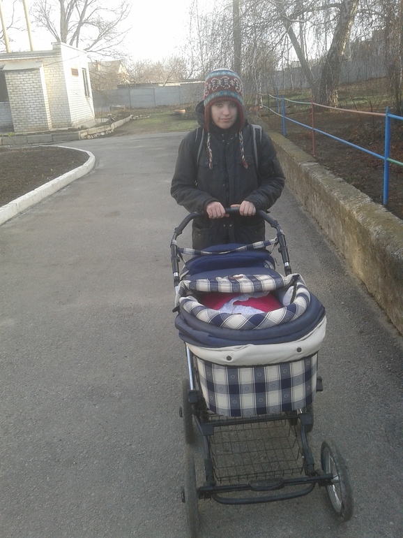 Антошка в это время стоит с коляской. У нас и школа с садом на одной территории и соединена проходом.