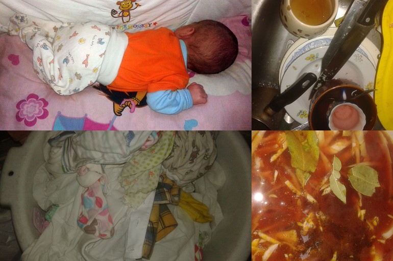 Решила переодеть малого, а он решил, что и мне надо переодеться вместе с ним. Фото этого безобразия нет, т.к. муж моет его, а я отмываюсь в душе…