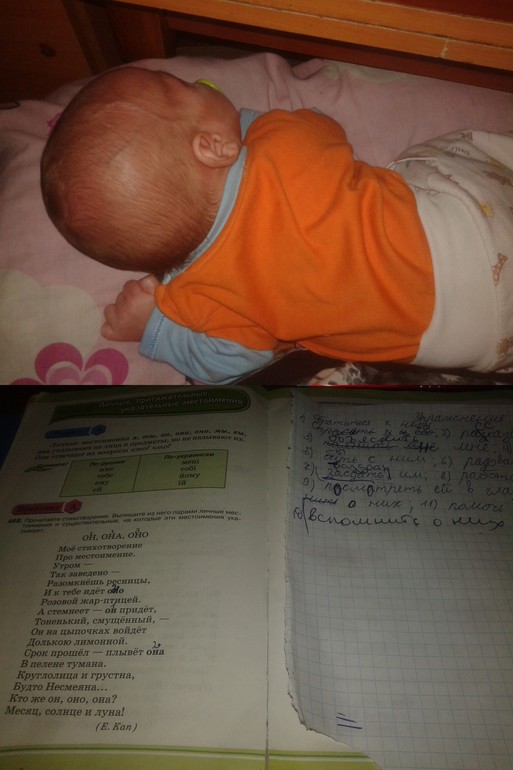 Отправила его обедать, выключила духовку и ушла обратно к малышу в кровать, а Антон учить уроки.