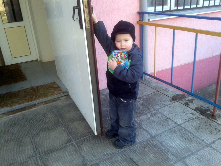 Домой приходим в 8:30, оставляю Лешу на улице,