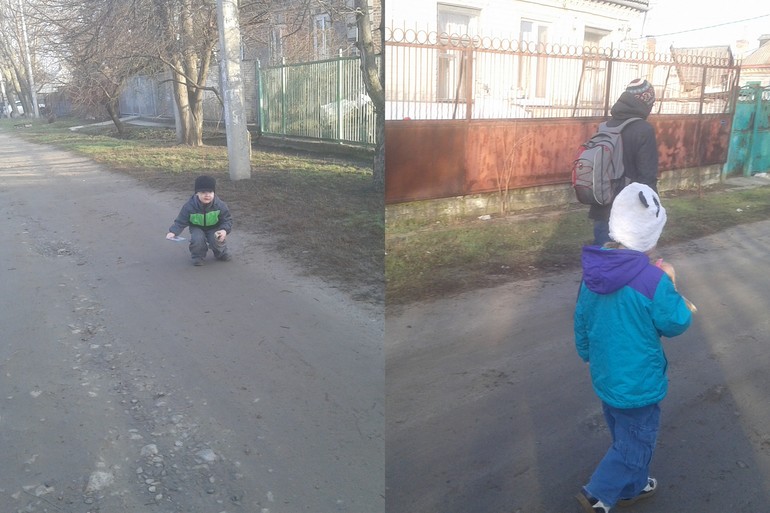 По дороге домой у Андрея начинает портится настроение. Кризис 3-х лет нас не обошел стороной, поэтому иногда он истерит по поводу и без. Пытаюсь рассказывать и объяснять, может это не правильный способ, но показываю остальным детям, что они одно целое и поэтому если у Андрея истерика мы останавливаемся все дружно и я ему объясняю, что все будут стоять и ждать пока он успокоится.