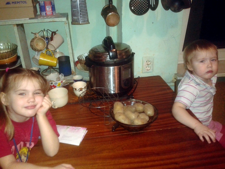 Укладываю Алексея и иду на кухню, за мной два маленьких хвостика))))