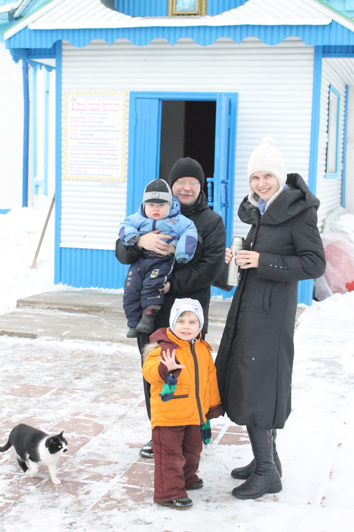 Отвезли нас добрые люди в церковь в Степановском (это село недалеко от нашего города), там тоже пока причастия ждали, погуляли в окрестностях... Серёга познакомился с двумя котами и одной собакой, а Митя их всех распугал...