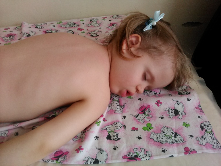 В 12-30 массаж. Лиза, как обычно, заснула, еле разбудила.